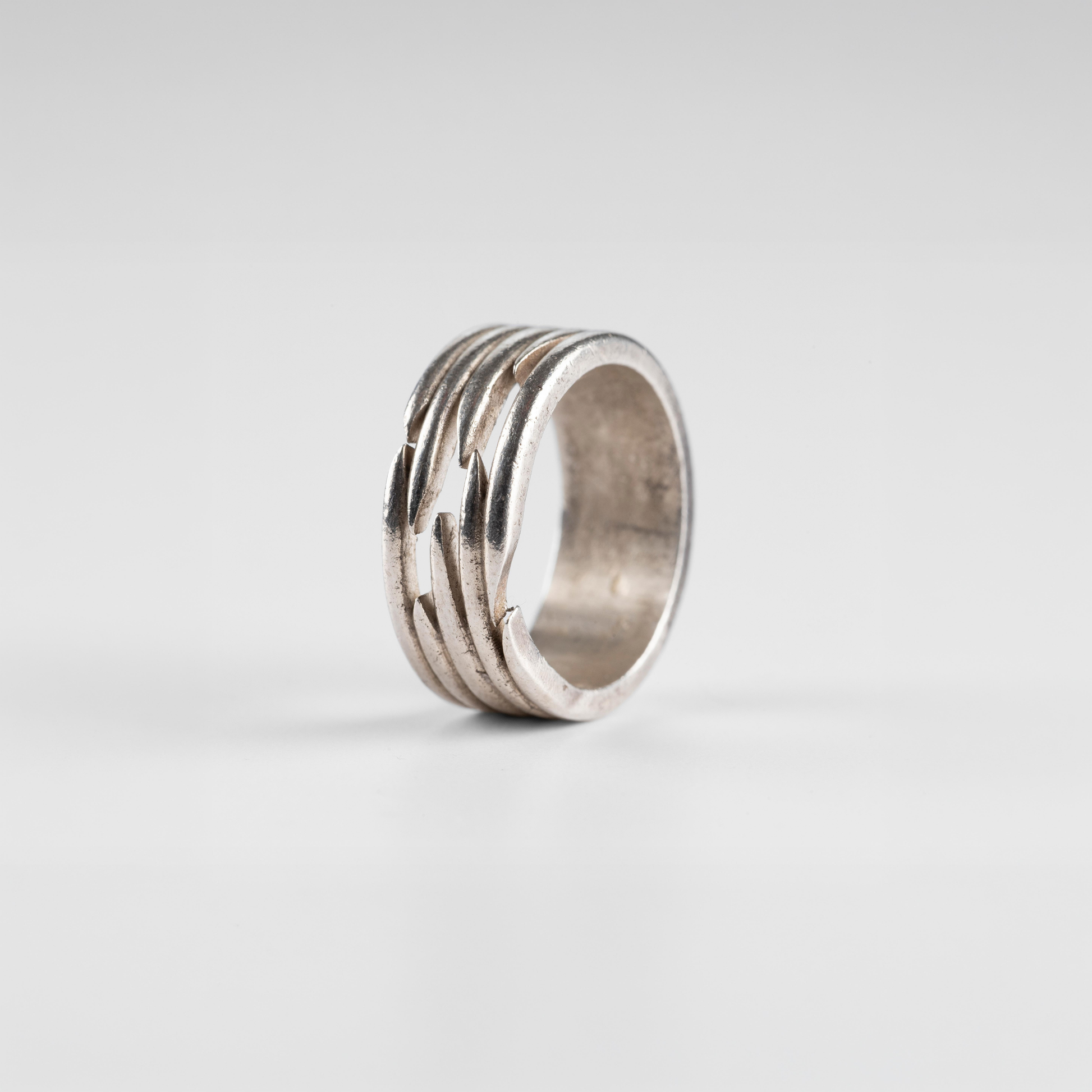 Forgiato in argento 925 massiccio e rifinito interamente a mano in Italia, ogni anello è scolpito, assemblato e lucidato attraverso un lungo processo artigianale.